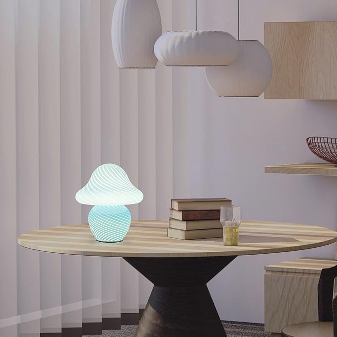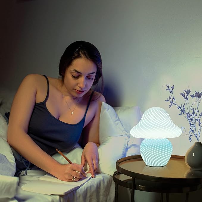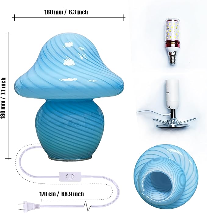 - 【Easy to clean, dust-proof design】:The glass mushroom table lamp is simple in structure, easy to operate and maintain. The one-piece closed glass design will not let dust enter the interior. The semi-circular top has a smooth appearance, not easy to accumulate dust, and easy to wipe.