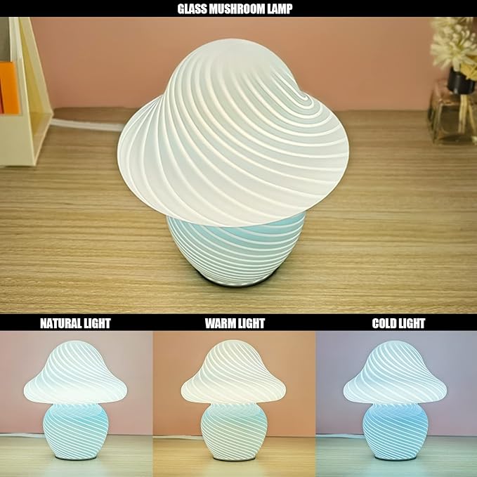 - 【Easy to use, suitable for multiple scenarios】:110V American standard plug, plug and play, no need to buy other transformers, simple and convenient. The wavy striped mushroom shaped lamp is beautifully designed, perfect for your bedroom, bedside, study, office, living room, sofa side.