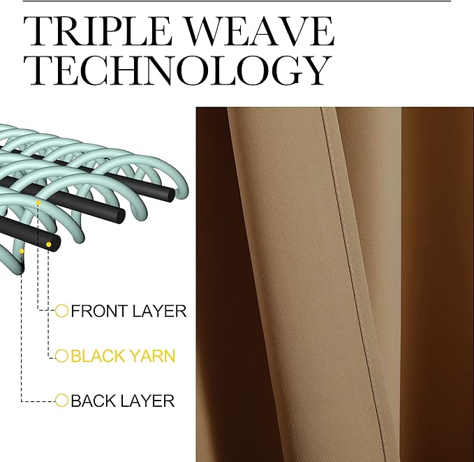 - ENERGY SMART: Triple weave blackout fabric balances room temperature by insulating against summer heat and winter chill. Protect your furniture, floors, and artwork from the ravages of the sun, the drapes will pay for themselves off over time.