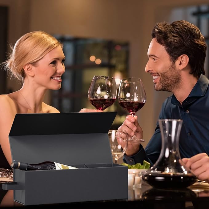- 💝 SUPER MAGNETIC DESIGN: The wine box is designed with super magnetic buttons for good sealing performance, which can better protect the gift from falling, and the magnetic opening and closing design makes the box easy to open and close repeatedly.