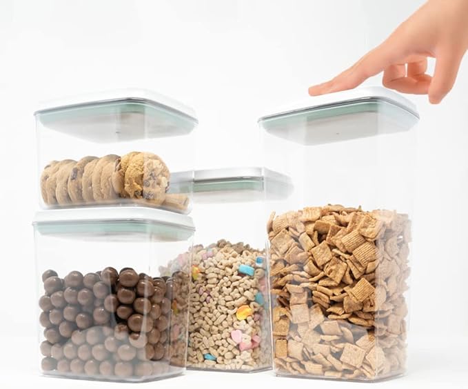 BopTop (4pc Set) Airtight Food Storage Container – Mechanical Silicone Seal Canister - BPA-Free Stackable - 1.3Qt/2.1Qt/2.8Qt/3.5Qt