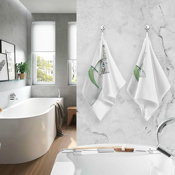 Cat Holding A Tulip Bath Hand Towel Soft Cotton Highly Absorbent Fingertip Towels for Bathroom Beach Kitchen Sports Gym Yoga Travel (2-Pieces Towel Sets, 28x16 inch)