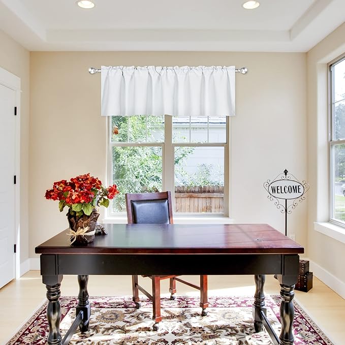 White Valance for Windows 72x18 Inch Solid Thermal Insulated Blackout Rod Pocket Kitchen Short Curtain Toppers Valance for Bathroom Living Room 1 Panel