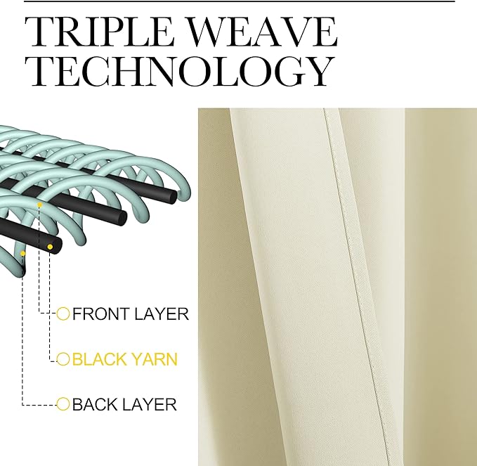 - ENERGY SMART: Triple weave blackout fabric balances room temperature by insulating against summer heat and winter chill. Protect your furniture, floors, and artwork from the ravages of the sun, the drapes will pay for themselves off over time.