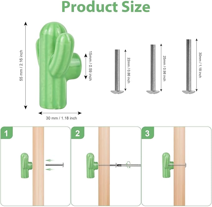 - Set of 6 delicate lovely cute cactus-shape door knobs made of durable hard ceramic material, which can be used for kid's cabinets, cupbpard, drawers, trash cans, chests of drawers, wardrobes, etc.
