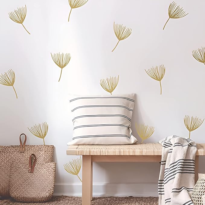 Golden Dandelion Wall Decals DIY Flowers Wall Stickers for Bedroom Living Room Office Home Wall Art Decor