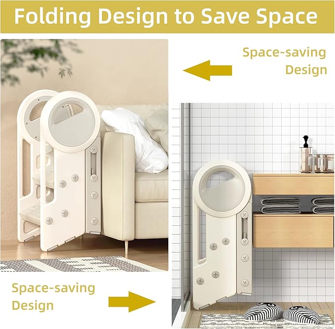 - Miraculous Design: You only need to adjust the third step easily, you can put it together with the second step perfectly. It can also be leaned against the bathroom sink by folding it after use, which is very space-saving.