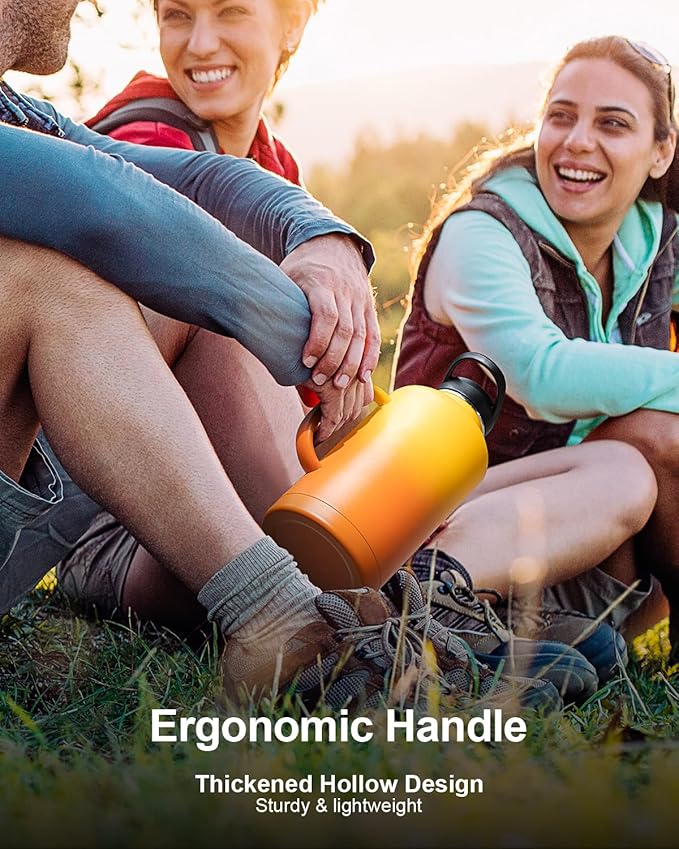 - 48 Hrs Cold & 24 Hrs Hot: Trebo insulated water bottle with handle features double-walled vacuum insulation with a copper lining, keeping beverages cold for 48 hours and hot for 24 hours. Say goodbye to lukewarm drinks and hello to refreshing sips, even in the hottest summer.