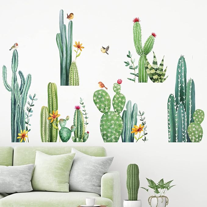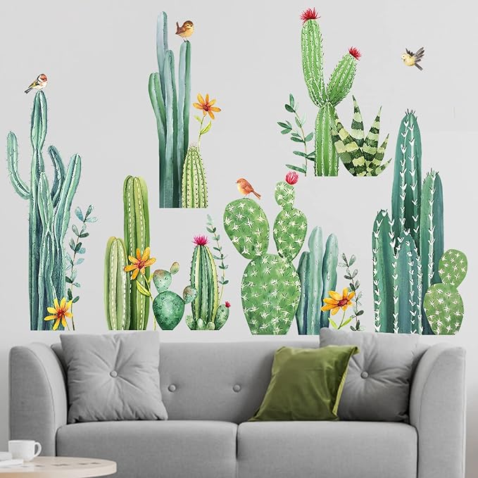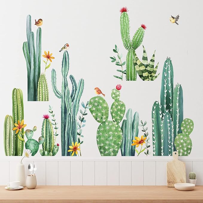 - Bedroom Decorations: Our modern cactus wall decals are designed with various vivid patterns like cactus flowers, goldfinch bird, wildflowers. These cactus wall decals and stickers are suitable for bedroom, living room, kitchen, bathroom, patio, farmhouse, retail store, restaurant, coffee house and party supplies. Perfectly DIY a warm space for your home and office