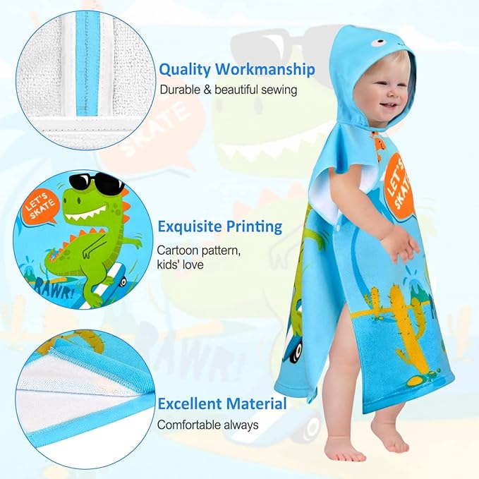 - CUTE DESIGN: Colorful kids hooded beach towel elements, such as mermaids, crocodiles, dinosaurs, starfish, sharks, perfectly match your child's preferences! Your baby will love wrapping up in this towel to add a touch of fun to their beach adventures