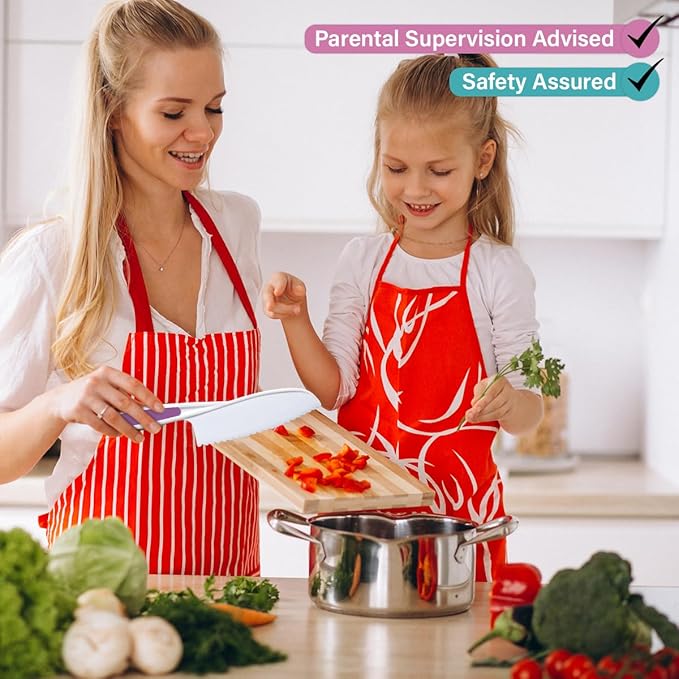 - Safety assured: If you are searching for an efficient kids knife for real cooking, we’ve got you covered! Our Kids knife is especially designed with serrated edges so your little one can show their creativity, while being safe! Parental supervision advised