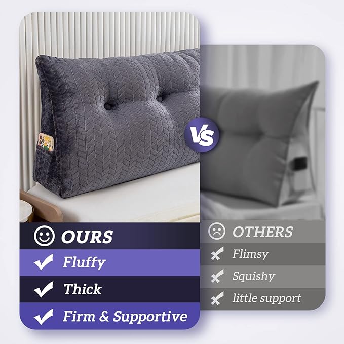 - BEST QUALITY YOU CAN TRUST: The wedge headboard pillow is made of premium 3D quality velvet fabric – the plush texture of this velvet fabric creates a rich and luxurious feel while still providing comfort, softness, and support.