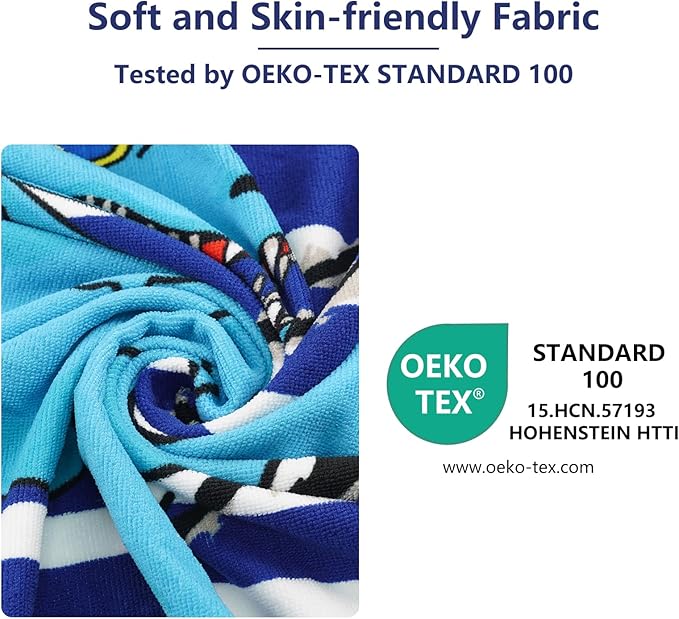- OEKO-TEX Standard 100 Certification - The bath poncho for children has been tested for harmful substances by OEKO-TEX Standard 100 and comply with safety standards. Soft, absorbent microfiber material ensures your child stays warm and dry after bath time.