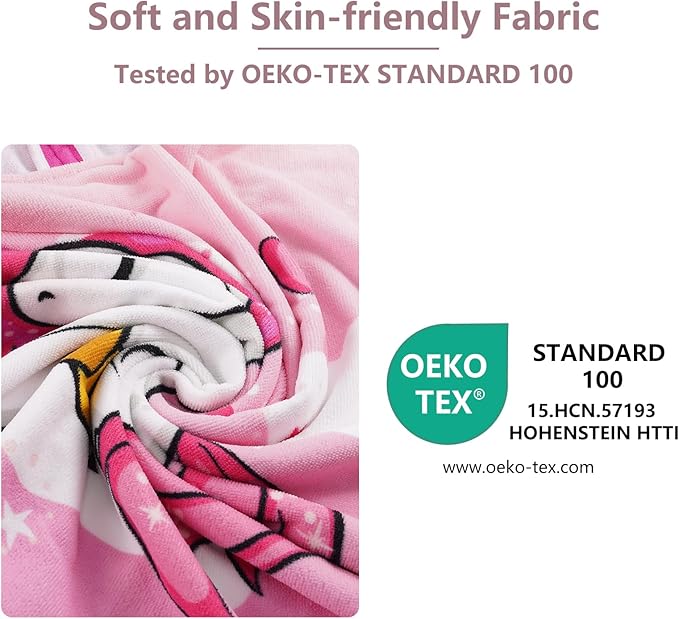 - OEKO-TEX Standard 100 Certification - The bath poncho for children has been tested for harmful substances by OEKO-TEX Standard 100 and comply with safety standards. Soft, absorbent microfiber material ensures your child stays warm and dry after bath time.