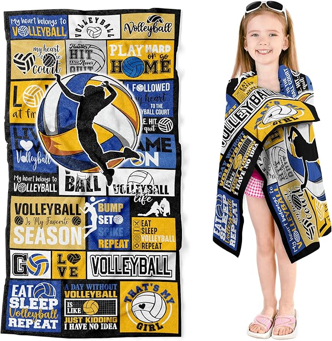 Volleyball Towel for Girls 30" x 60" Microfiber Volleyball Beach Towel for Women Bath Pool Shower Camping Travel Towel