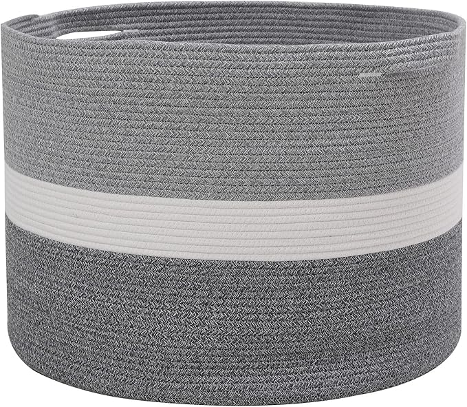 24" x 24" x 17" Mega Size Extra Large Storage Basket, Cotton Rope Storage Baskets, Woven Hamper, Cloth Storage Bin, for Clothes Blanket, Dual Grey