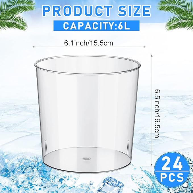 - Sufficient for Needs: you will receive 24 pieces of plastic champagne ice buckets in round shape, which can be placed into different areas and can satisfy your various use demands; The clear design can blend into different decor styles and allow you to clearly see what inside