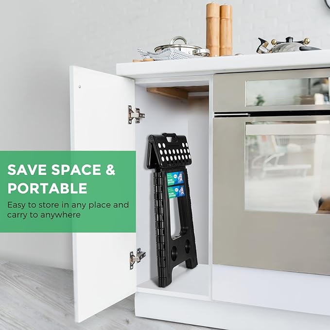 - 【Lightweight & Portable】Easy to carry around, this foldable step stool can be used across rooms or taken outdoors. Its compact design fits into any storage space, even your car for those camping trips. Upgrade your portability with Solid Strength.