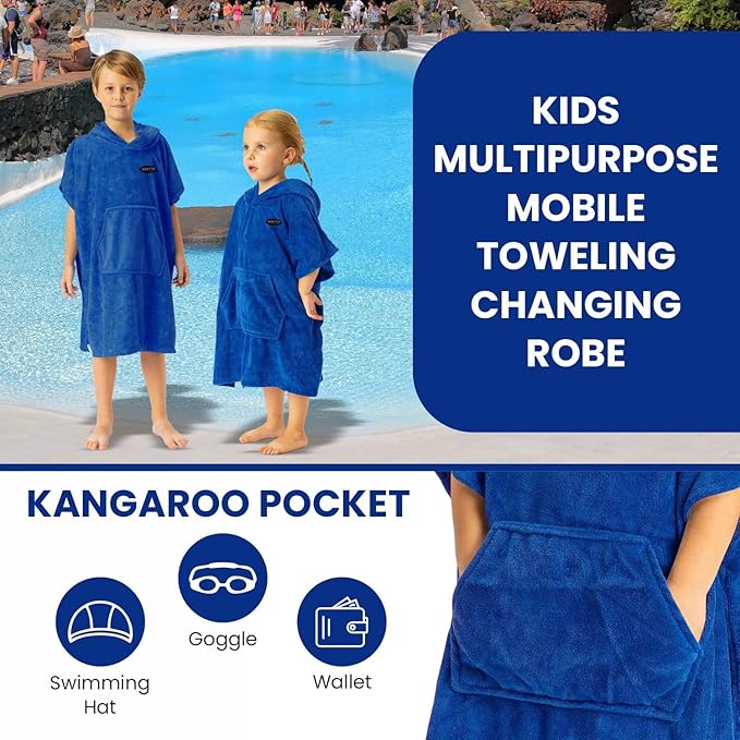 Surf Poncho for Kids with Hood, Quick Dry 80% Microfiber Polyester Changing Robe Beach Towel W/Outside Pocket - Outdoor, Surfing, Swimming, Bathing, Travelling, Camping, Pool (Royal Blue)…