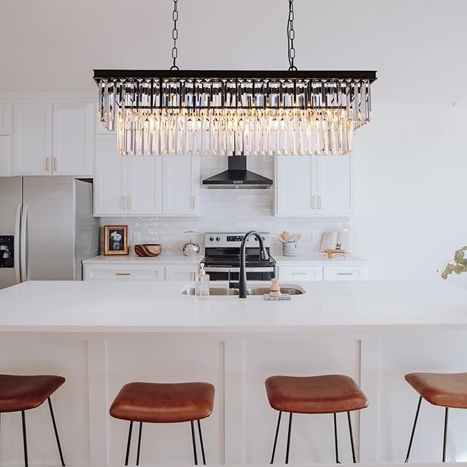 Wellmet Black Crystal Chandelier 40 inch for Dining Room, 11-Light Modern Linear Chandelier Ceiling Hanging, Farmhouse Chandeliers Light Fixture for Living Room, Dining Table, Bedroom, Kitchen Island