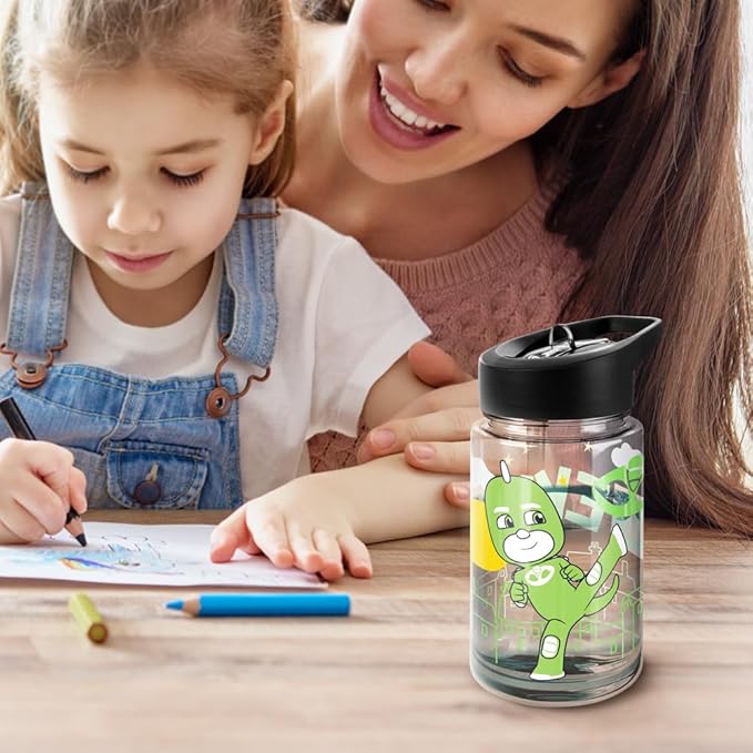 LOGOVISION PJ Masks Kids Tritan Plastic Water Bottle with Straw Lid and Handle, Reusable Tumbler for Toddlers, Unisex for Girls and Boys, 12oz, Big Gekko