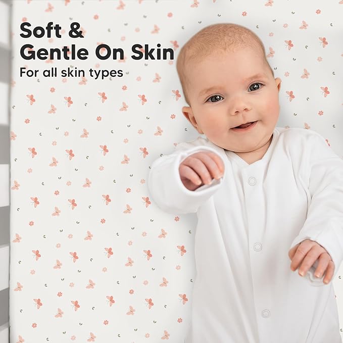 2-Pack Crib Sheets for Boys,Girls - Viscose Derived from Bamboo Fitted Crib Sheet, Organic Baby Crib Sheets, Crib Mattress Sheet,Toddler Bed Sheets,Baby Sheets for Crib Fitted Sheets(Butterflies)