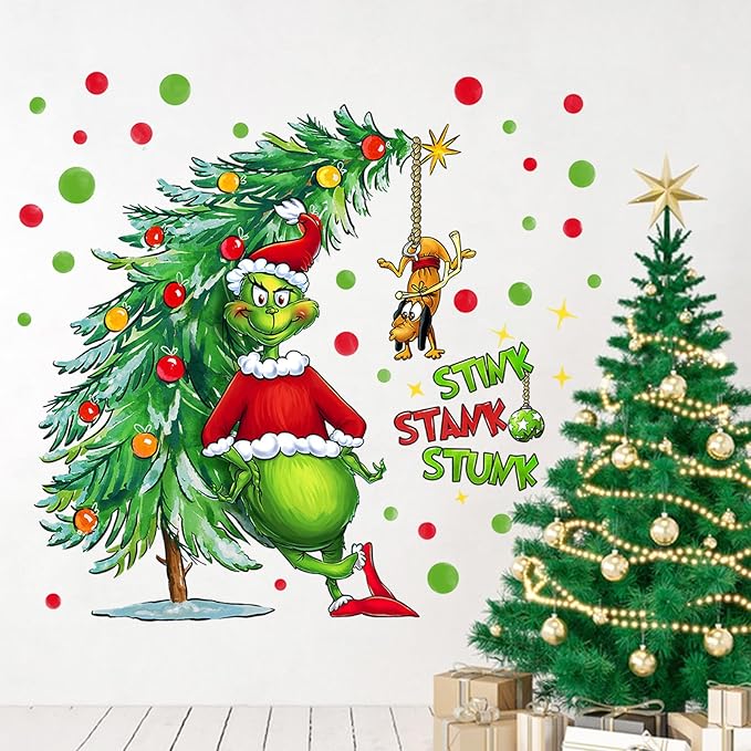 - Christmas Home Decor: Our christmas wall decals are designed by our professional designers with various patterns like Max dog, Christmas tree, red and green polka dots, which perfectly create a Christmas atmosphere for your home. These wall arts are suitable for bedroom, living room, kitchen, office, etc.