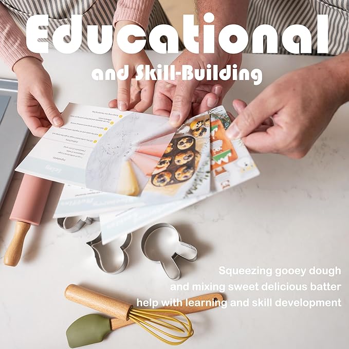 - 🎂 Skill Development Through Fun: Not just a baking set, but an opportunity for valuable skill development. Engage your little one in activities that enhance dexterity, teach crucial math skills, and improve sensory learning. From baking cookies to creating fun-shaped sandwiches and decorating cupcakes, this set offers creative possibilities limited only by your imagination. Make learning fun while strengthening the bond with your child through the joy of baking together!