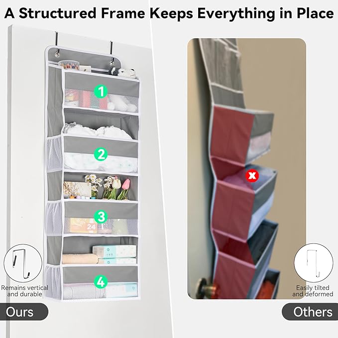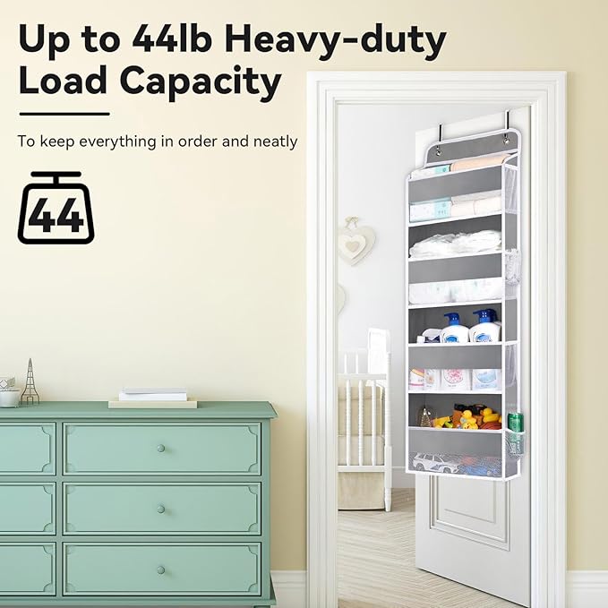- 【Maximize Your Storage Space】 The vertical design of the over the door organizer lets you put daily essentials on the back of a door, they'll be out of the way, yet easy to grab when you need one. It easily adds extra storage to any room, pantry or closet to tidy up every room in your home.