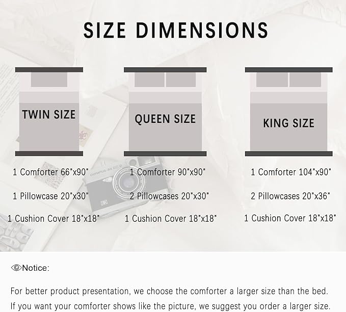 - Queen Size : 4 Pcs Queen Comforter Set includes one comforter measures 90x90 inches, two pillow cases measure 20x30 inches, and one decorative pillowcase measures 18x18 inches