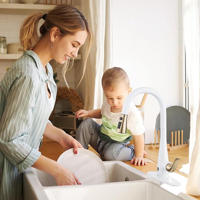 - Chic White and Gold Color: Embrace with our HGHGK faucet in a mesmerizing white and gold color,that elevate your kitchen. Included soap dispenser enhances functionality and tidiness, making culinary tasks effortless and organized.