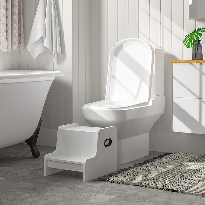 HOOBRO Step Stool for Kids, Two Step Toddler's Stool, Kids Potty Training Stool with Handles, Non-Slip Pads for Safety, Easy to Move, for Sink, Bathroom, Bedroom, White WT01JD01G1