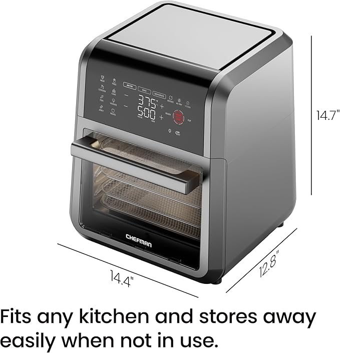Chefman 12-Quart 6-in-1 Air Fryer Oven with Digital Timer, Touchscreen, and 12 Presets - Family Size Countertop Convection Oven, Dishwasher-Safe Parts