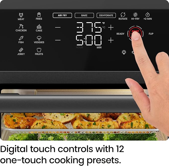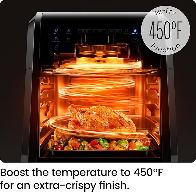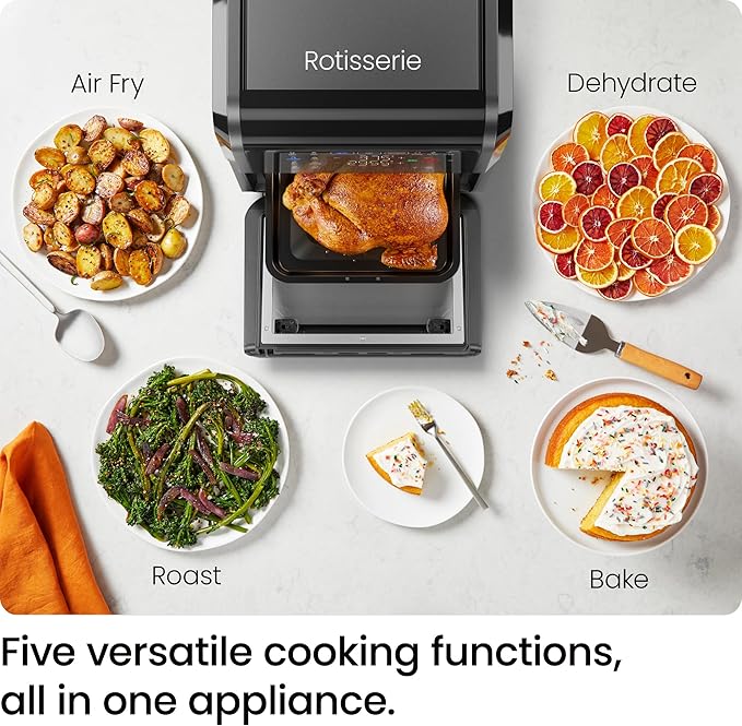 - 6-IN-1 AIR FRYER: Air fry, bake, dehydrate, rotisserie, roast or reheat to crispy perfection in one convenient appliance.