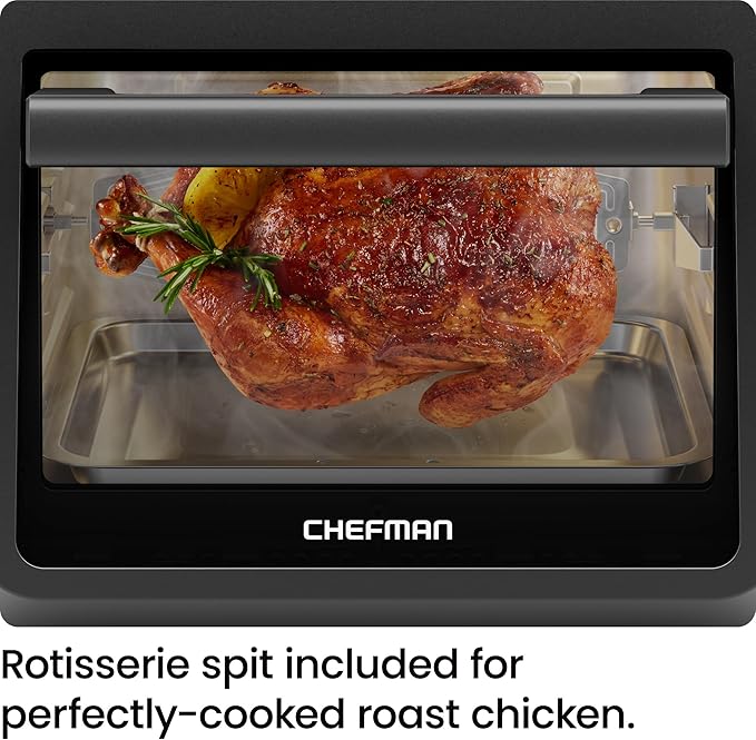 - ROTISSERIE CHICKEN COOKER: The stainless-steel rotisserie oven spit ensures crispy air-fried skin with a fraction of the added fat.