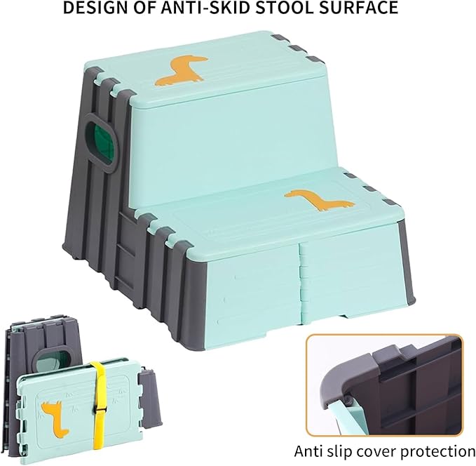 - 【Anti-slip Design】This folding step stool has lovely concave-convex pattern design with silicone on the surface, greatlyl increases the friction of the contact surface,kids won't slip even on the wet feet, very safe for your baby.