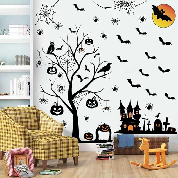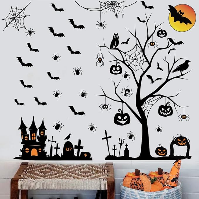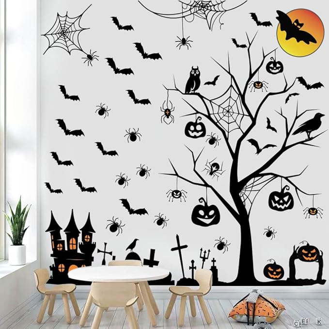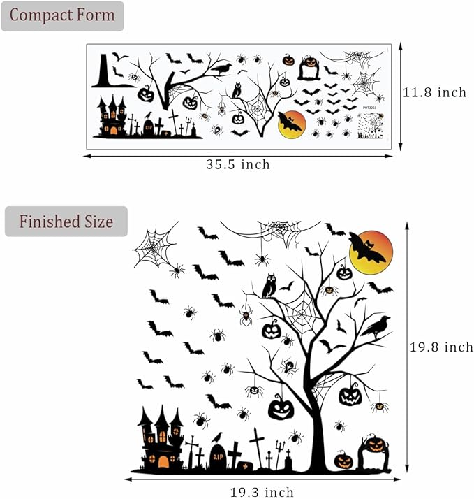 - Package Include: There are a set of Halloween wall decals, including tree, castle, pumpkin, moon, bats, tombstone, and so on. Sufficient quantity and various sizes allow you to decorate the stickers on the wall, door or window according to your own ideas.