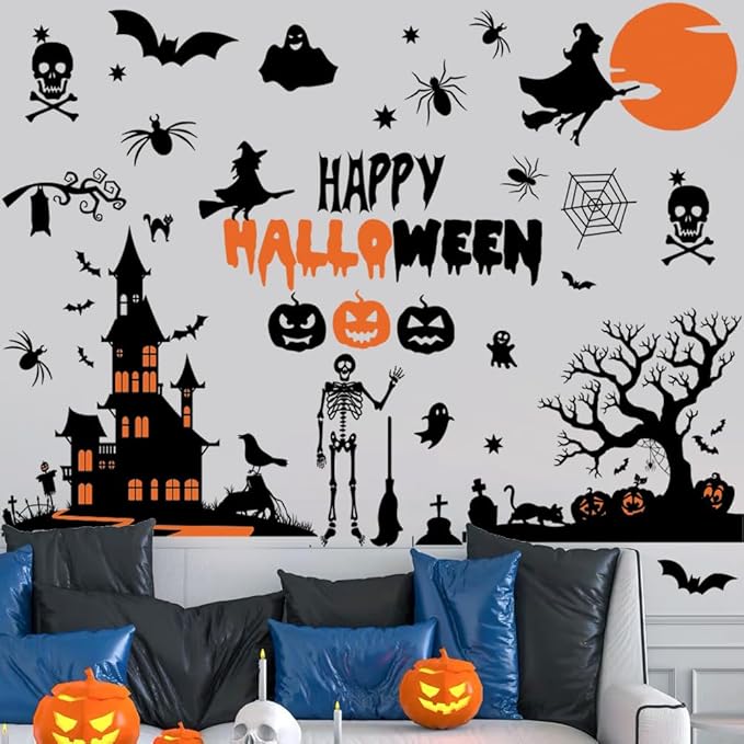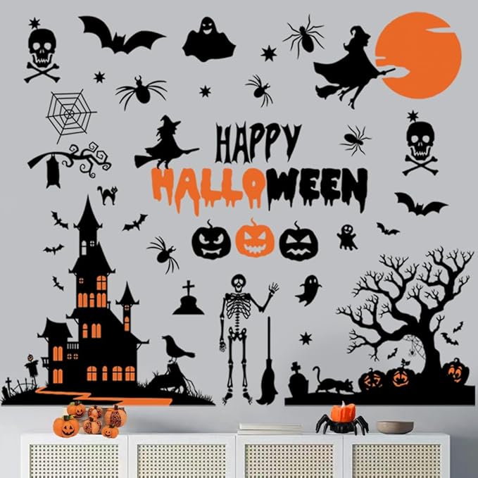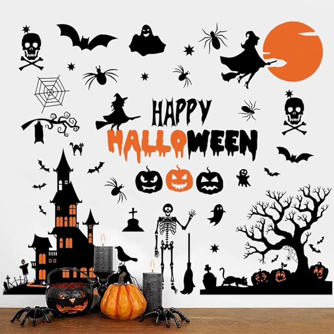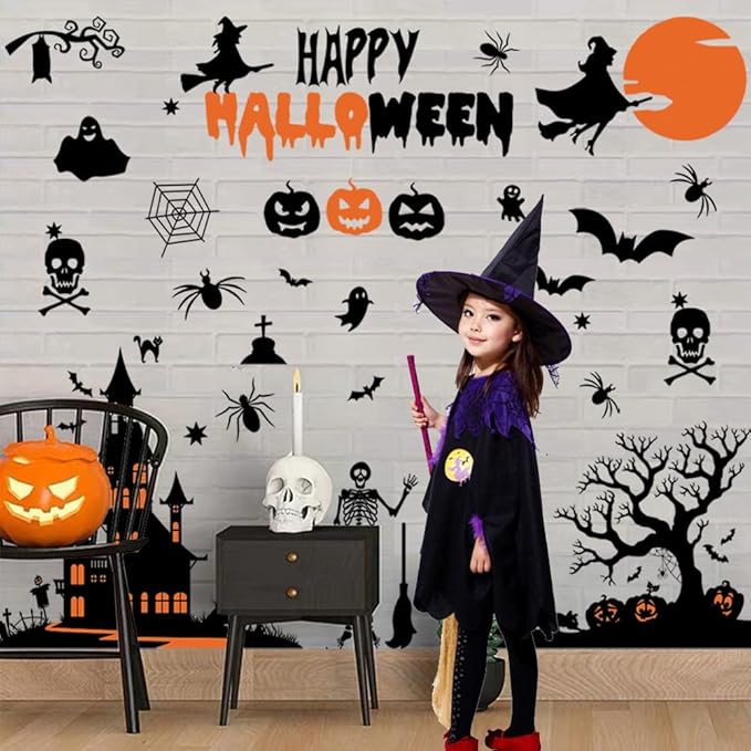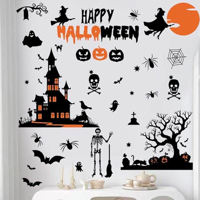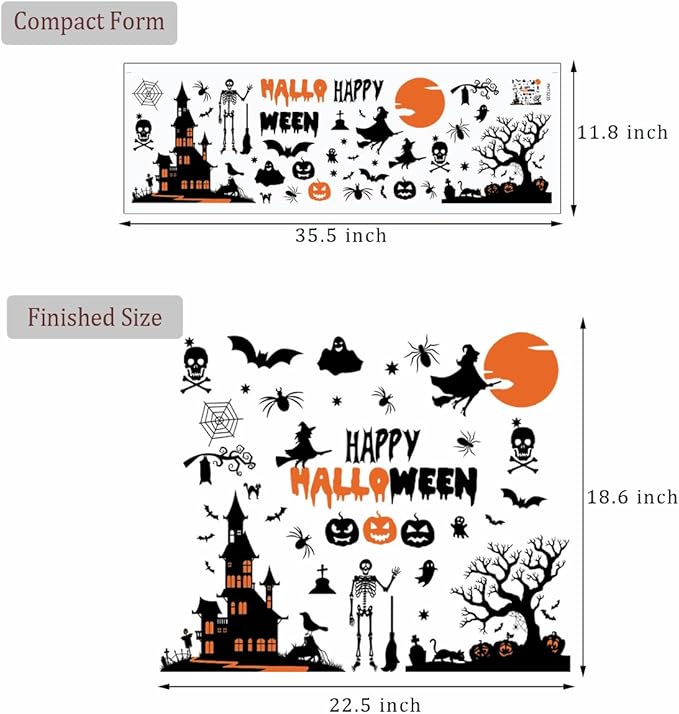 - Easy to Use: This Halloween party supply is easy to install. A simple peel and stick application method means these decals go on the wall in minute