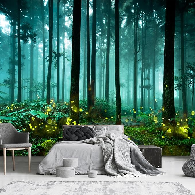 Green Enchanted Forest Wallpaper Mural for Kid's Bedroom Background Wall Decor (Not Peel and Stick)