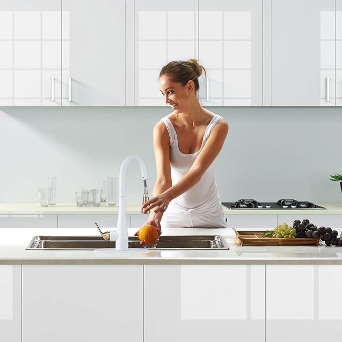 - Chic White and Gold Color: Embrace with our HGHGK faucet in a mesmerizing white and gold color,that elevate your kitchen. Included soap dispenser enhances functionality and tidiness, making culinary tasks effortless and organized.