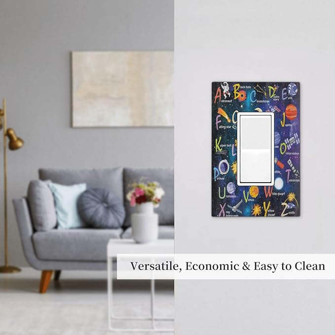 ABC Outer Space 1 Gang Rocker Light Switch Plate Alphabet Galaxy Educational Single Decora Outlet Wall Plate Cover Faceplate Decorative Switchplate GFCI for Kidroom Nursery Living Room Boyroom Decor
