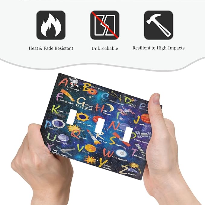 ABC Outer Space 3 Gang Light Switch Plate Decorative Alphabet Galaxy Boys Educational Triple Toggle Wall Plate Cover Electrical Faceplate Switchcover for Kidroom Nursery Home Boyroom Art Panel Decor