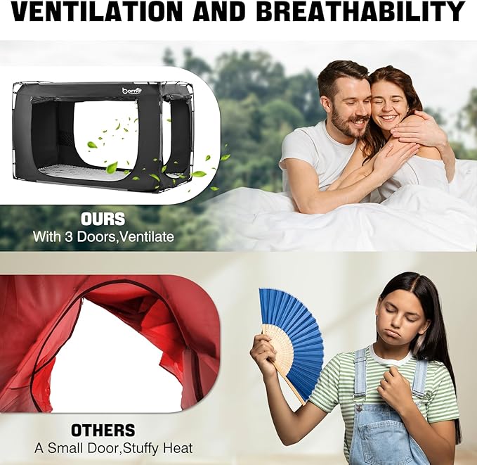 - 【RECTANGULAR PATENTED DESIGN】BORNA bed tent is designed with unique inserted poles, compared to pop-up tents on the market, we use 9.5mm fiber poles to create this through pole blackout tent, which won't collapse or bend, making it more stable and durable. The rectangular frame structure is also very spacious, making it an ideal choice for you.