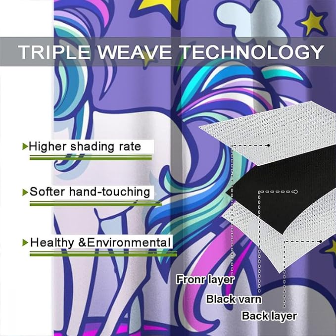Kids Unicorn Curtains Purple Cartoon Rainbow Cartoon Room Blackout Curtains Boys Girls Baby Room Decor Curtains Living Room Decor 52x84 Inch 2 Panels