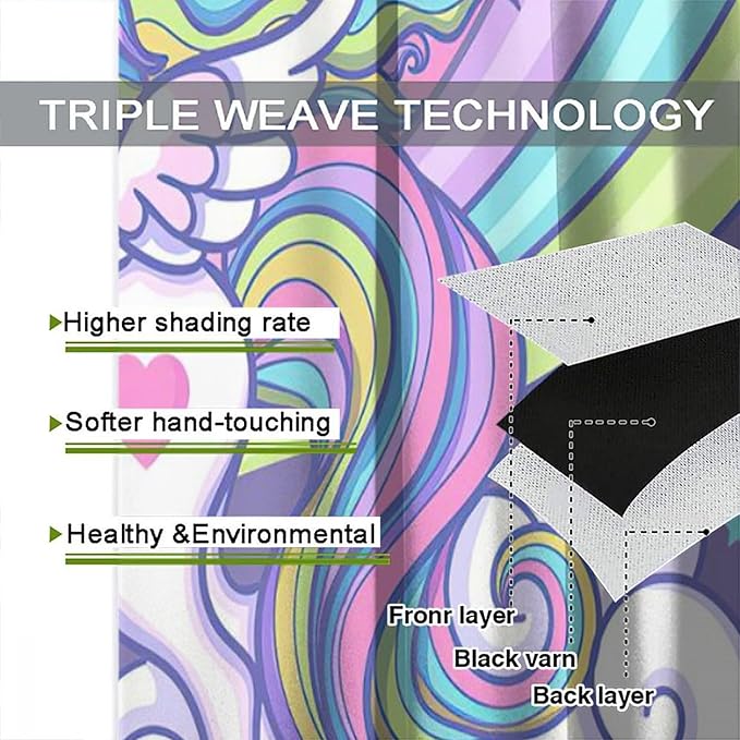 Kids Unicorn Curtains Purple Cartoon Rainbow Cartoon Room Blackout Curtains Boys Girls Baby Room Decor Curtains Living Room Decor 42x45 Inch 2 Panels