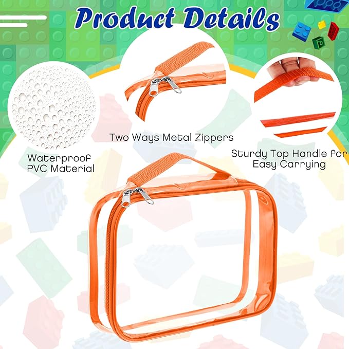 Sanwuta 3 Packs Toy Storage Bags with Zipper, Clear PVC Organizing Bags, Waterproof Toy Bags for Board Games, Building Blocks, Toys and Kids Books (Red, Yellow, Orange,12.6 x 9 x 2.36 Inch)