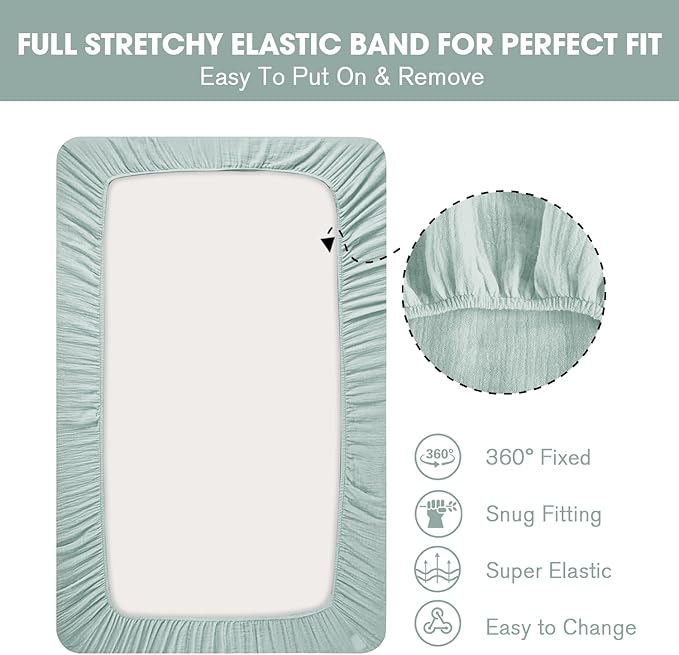 - 100% Muslin Cotton - The baby crib sheets set is made of ultra soft muslin cotton, super comfortable, skin-friendly and cozy to the touch, does not irritate baby's delicate skin. Breathable fabric ensures your baby a restful night's sleep;