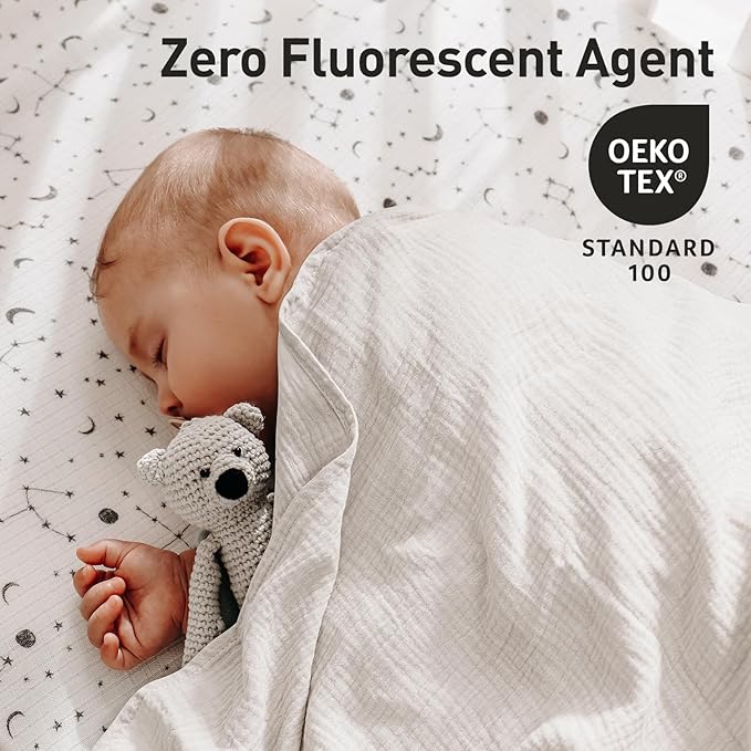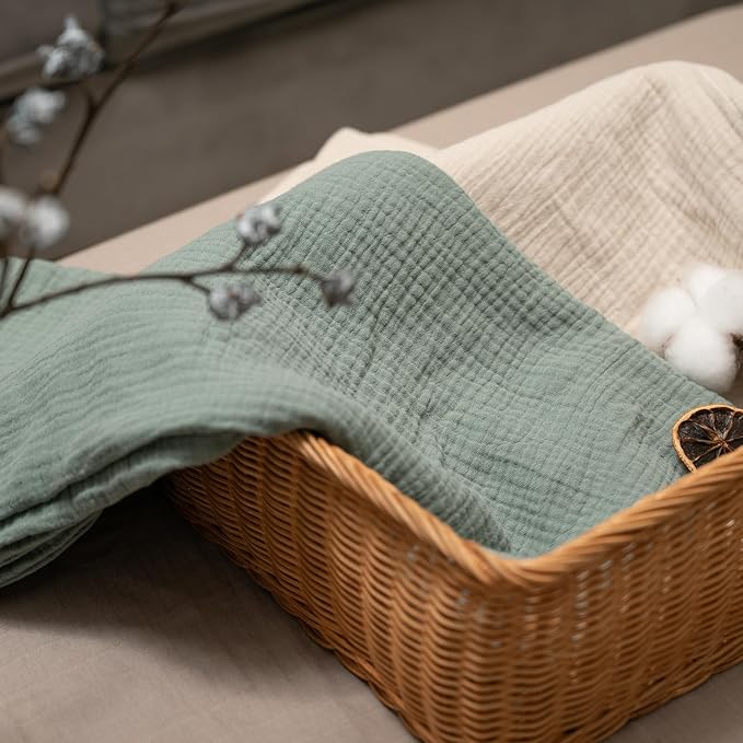 - SOFT & BREATHABLE: Our muslin swaddle blankets are made of 100% cotton (Muslin). The best pure natural material without harmful chemicals for babies, for maximum breathable with skin-friendly soft touch, which is gentle on baby's skin. And means they can keep your little one warm and cozy in cooler weather, let their skin breathe in warmer weather