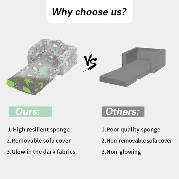 - 【Foldable Kids Sofa】: Children's sofa offer the flexibility to adapt to different situations. With a simple fold, they can effortlessly convert between a traditional sofa and a lounger, accommodating various seating preferences or transforming playtime into relaxation time.