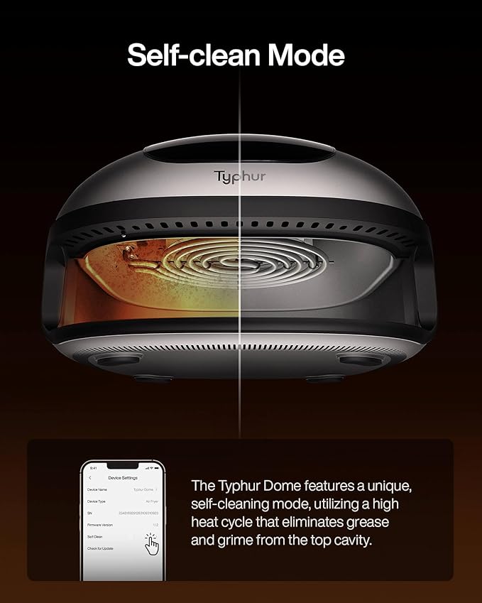 - ๐จ๐ป๐ถ๐พ๐๐ฒ ๐ฆ๐ฒ๐น๐ณ-๐๐น๐ฒ๐ฎ๐ป๐ถ๐ป๐ด ๐ ๐ผ๐ฑ๐ฒ | Typhur Dome's self-cleaning function removes oil and stains form the top cavity in 2 hours, leaving your appliance spotless. Activate it on the app once a month.